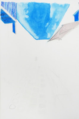 Madeleine is sketching more vacation memories below, preparatory to painting them. We love the orderly intricacy of this one....