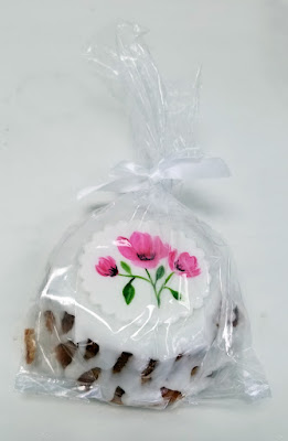 Because Donna is a professional pastry chef! She bakes and decorates lovely pastries like the cake above and the special minicake she brought for her teacher (below). We can assure you that this tastes as good as it looks, too.