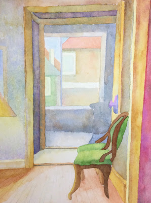Started this in class and worked on it at home last night, and I like it. It’s photographing lighter than it actually is, but I like the effect of the light from below. I always include Steve’s building b/c it is classic Chicago 8-flat with a lot of interesting decorative touches that I always end up leaving out. I’m going to have hire Elaine to paint it to do it justice….