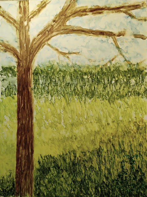 This is the tree that Ken painted using Constable's image. Ken was not very happy with it. So he cropped seven views of Constable's tree, and painted each one.